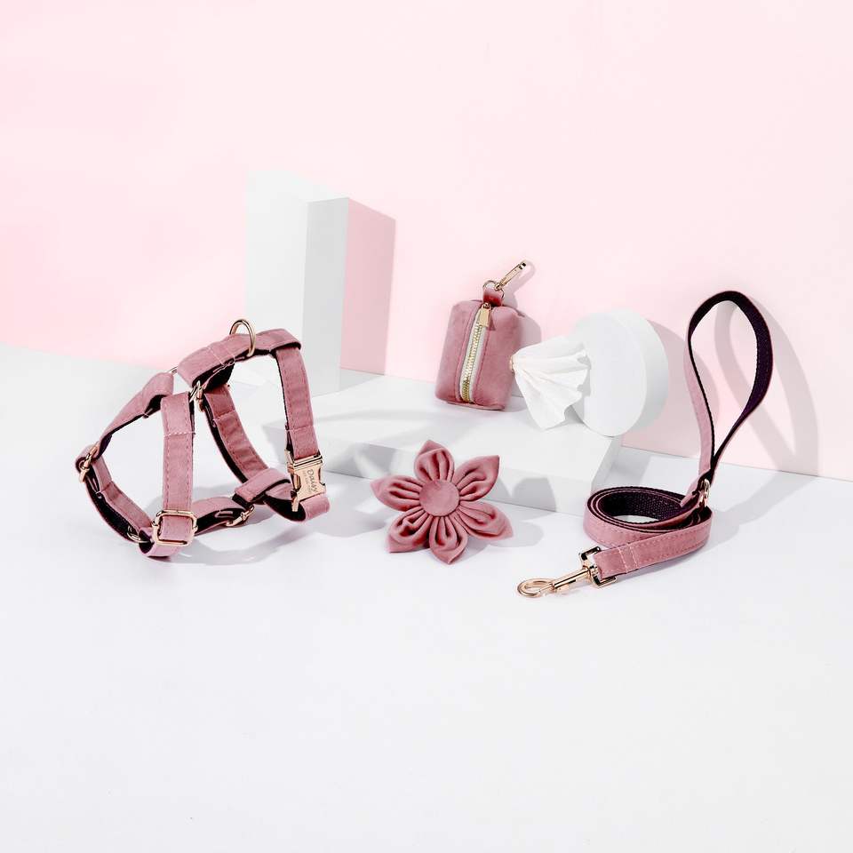 Purple Pink Personalized Stainless Steel & Nylon Harness and Leash Set No Pull Harness Poop Bag Holder Dog Gifts