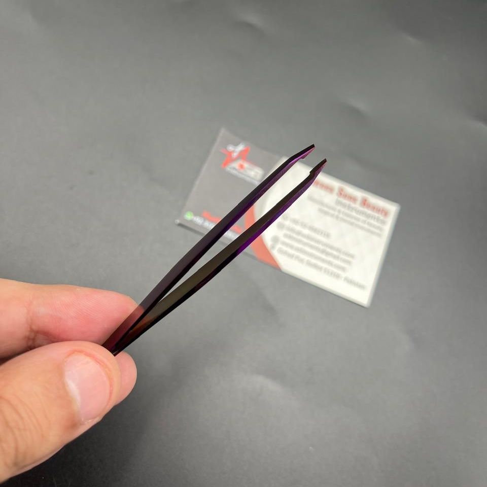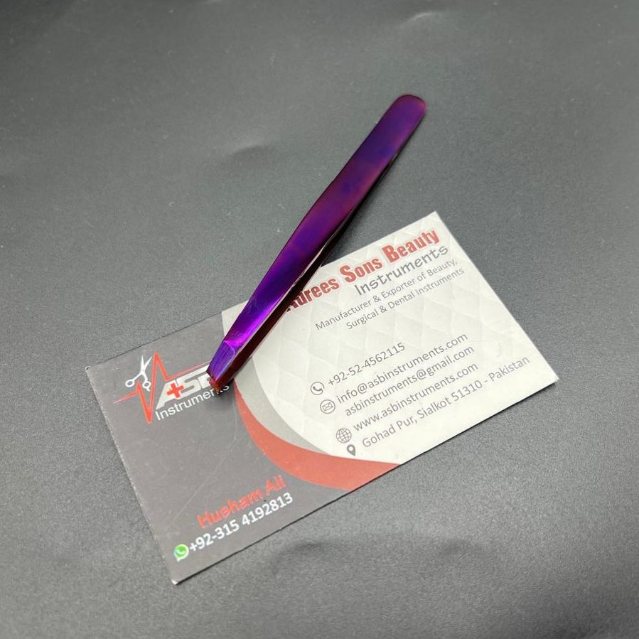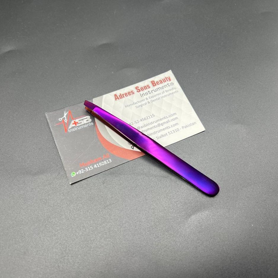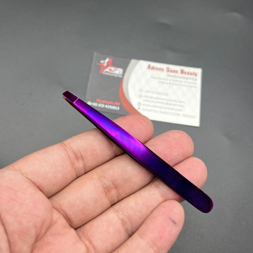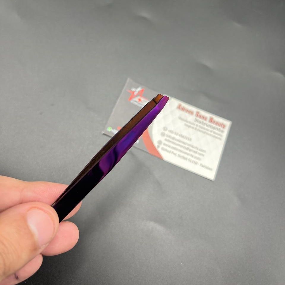 Purple Plasma Stainless Steel Slanted Squared Sharp Eyebrow Plucking Tweezer Custom logo Professional Brow Tweezers