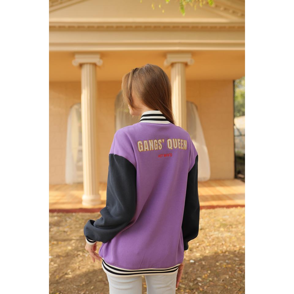Purple Quilted College Jacket for Women Customizable Letterman Satin PU Leather Embroidered PU Leather Cotton for Spring Autumn