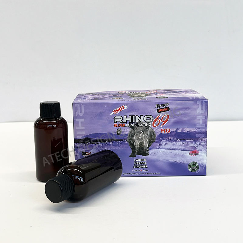 Purple Rhino Sex Drink Eco-Friendly PET Plastic Packaging with Recyclable Bottle Stickers Label for Rhino Drink Bottle Packaging