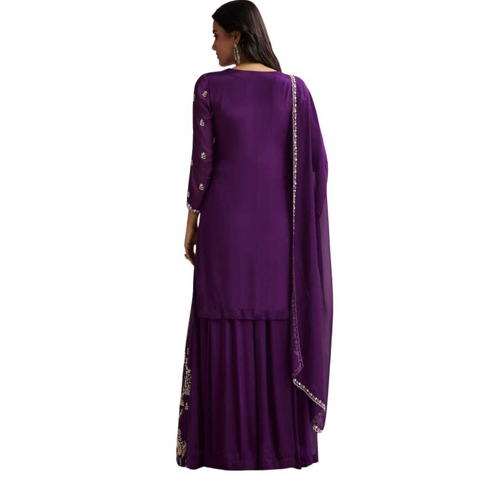 Purple Sequin Embroidered Palazzo Suit With Dupatta Wholesale Women Ethnic Apparel OEM Factory Bulk Supplier Custom Fashion