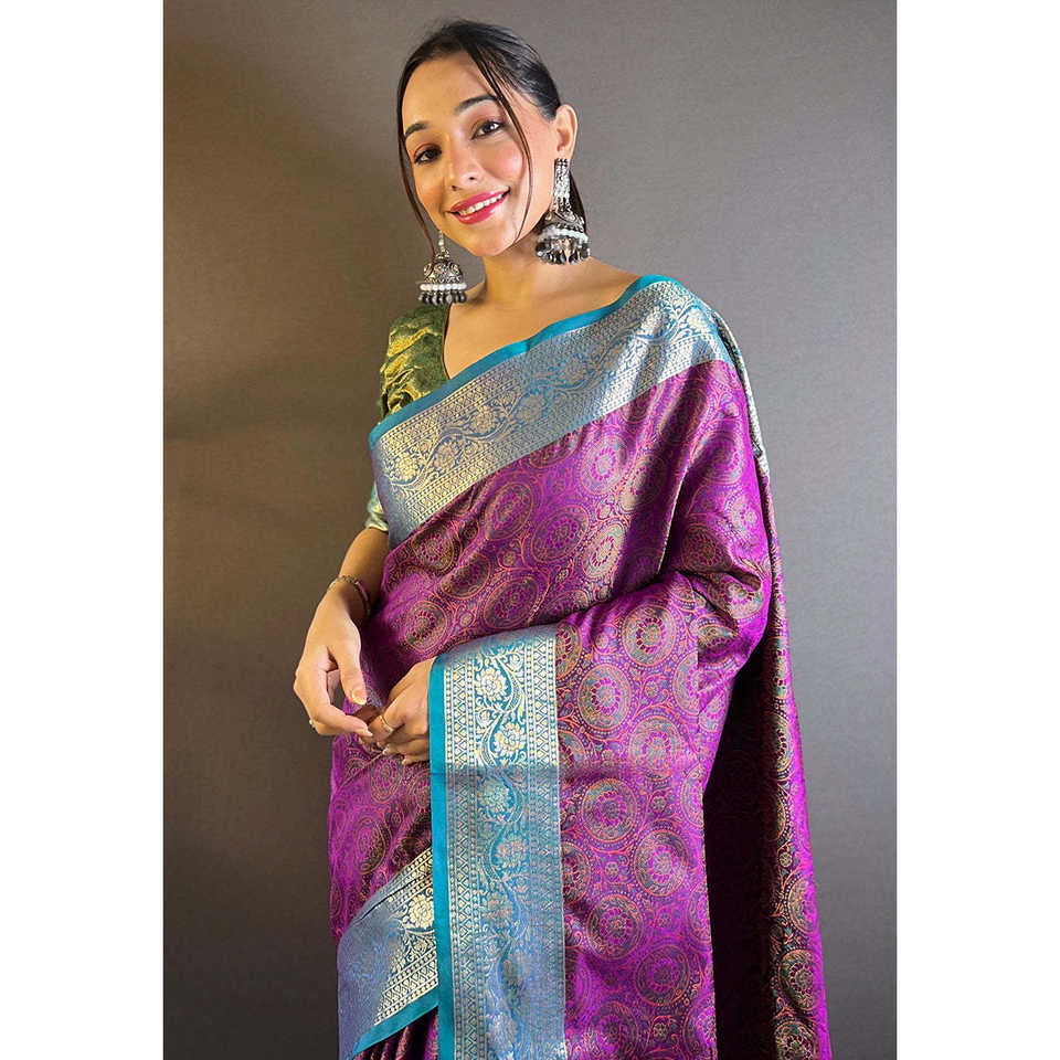 Purple Soft Kashmiri Silk Zari Woven Contrast Saree Traditional Indian Saree Sare Sari