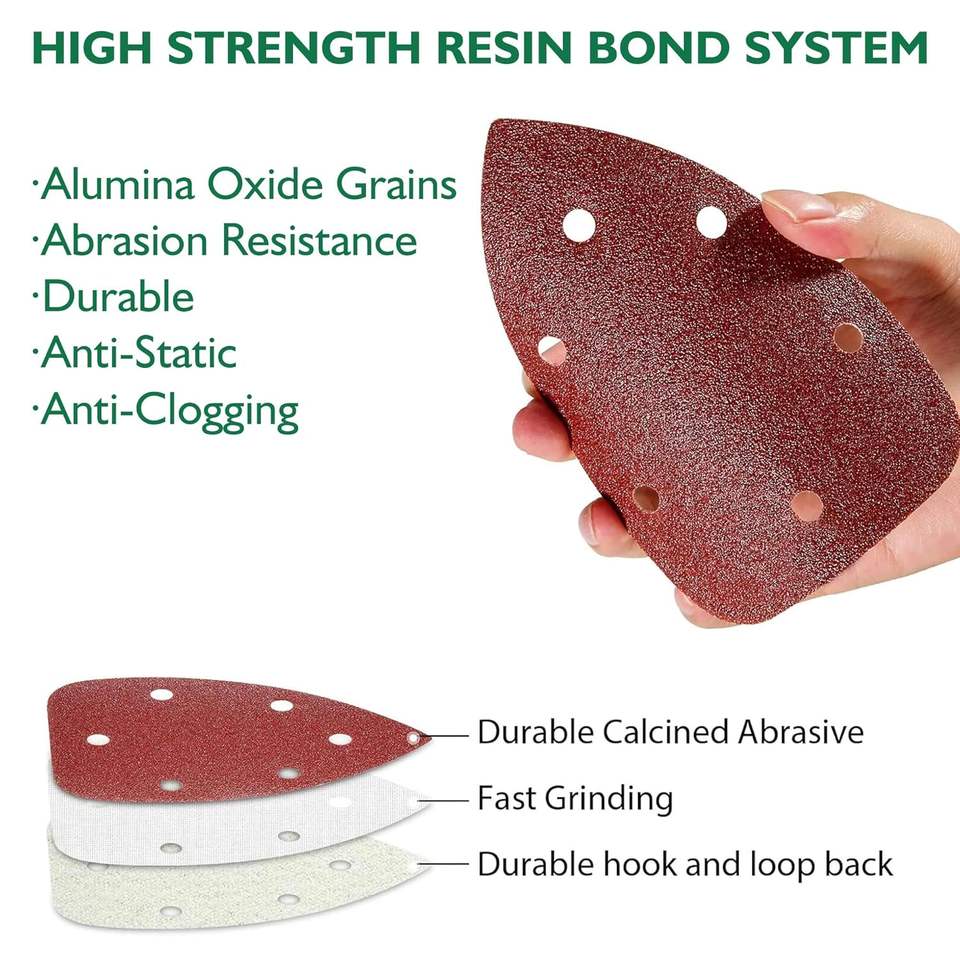 Purple Triangle Sanding Pads Ceramic Alumina Grain Sandpaper 120 Grit Hook and Loop Corner/Detail Sanding Sheets for Automotive
