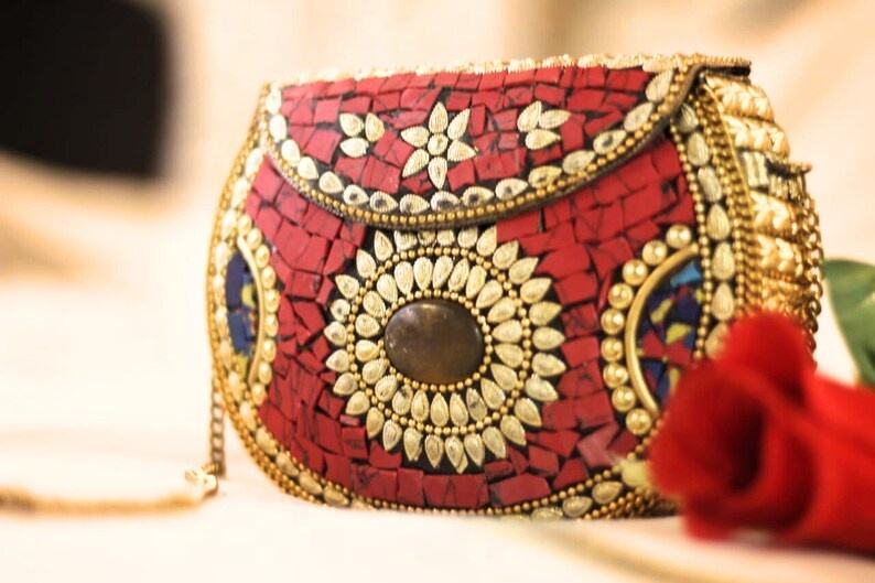 Purple and Golden Mosaic Evening Bags for Women and Girls Luxury Crafts' Price-Competitive Ladies' Clutch Purse