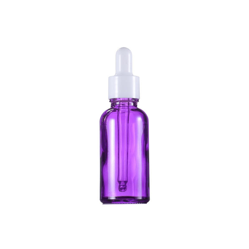 Purple color empty round glass essential oil dropper bottle for cosmetic serum