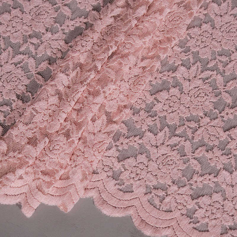 Purple Flower Lace Fabric, Stretch Lace Floral Design with Scallop Edge, Elastic Lace for Blouses and Laundry