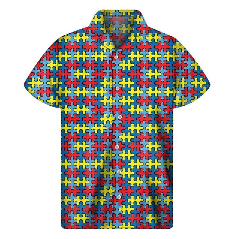 Puzzle Digital Print 100% Polyester Quick Dry Casual Shirt Men Women Summer Hawaiian Shirts Tops Street Lapel Blouse Button Half