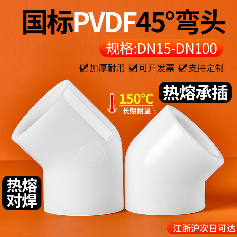 Pvdf Pipe Fitting 45 Degree Elbow 25 Mm Hot Melt Socket Welding For Chemical Oil Gas Industry White Composite Pipe Joint