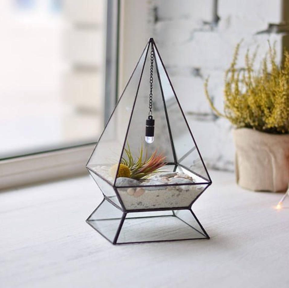 Pyramid Glass Terrarium Vase With Led Light Wholesale Geometric Planter Indoor Garden Home Decor Tabletop Plants Holder