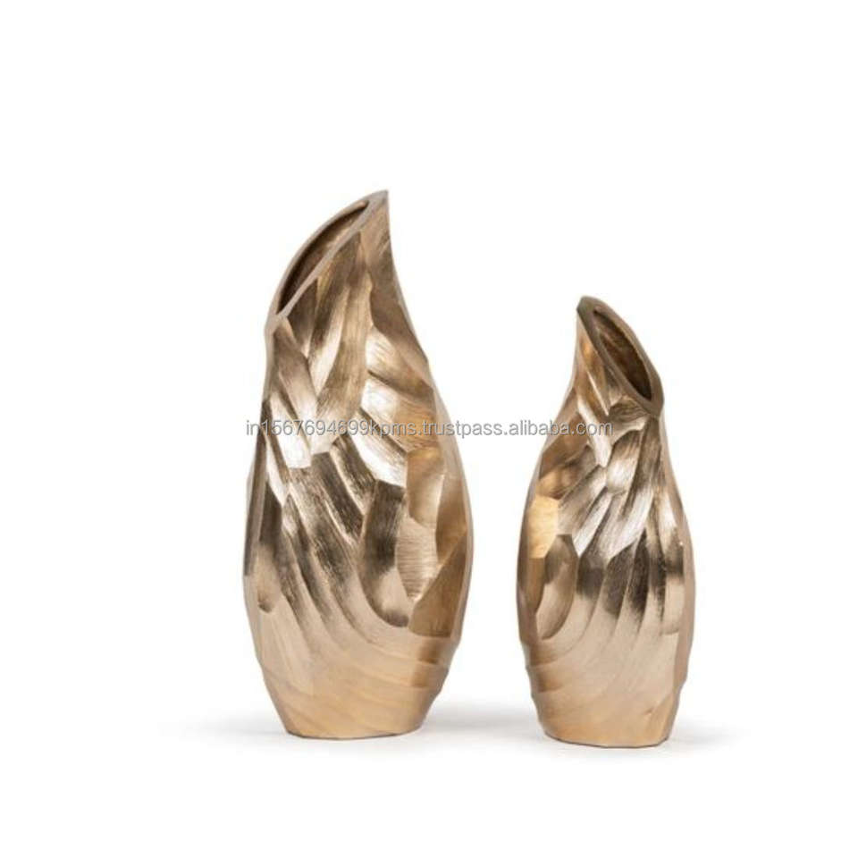Pyramid Style Nordic Flower Vase Set Hardly Handcrafted Solid Brass Two Tabletop Flower Vases Mirror Polished Very Elegant Pots