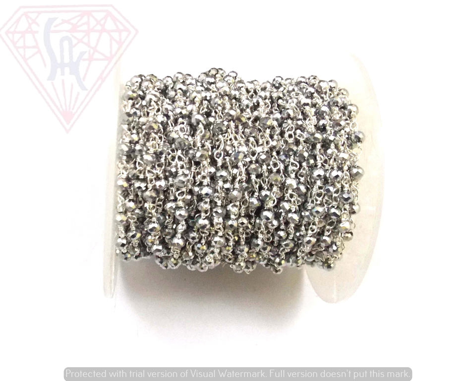 Silver Pyrite Wire Wrapped Beaded Rosary Chain