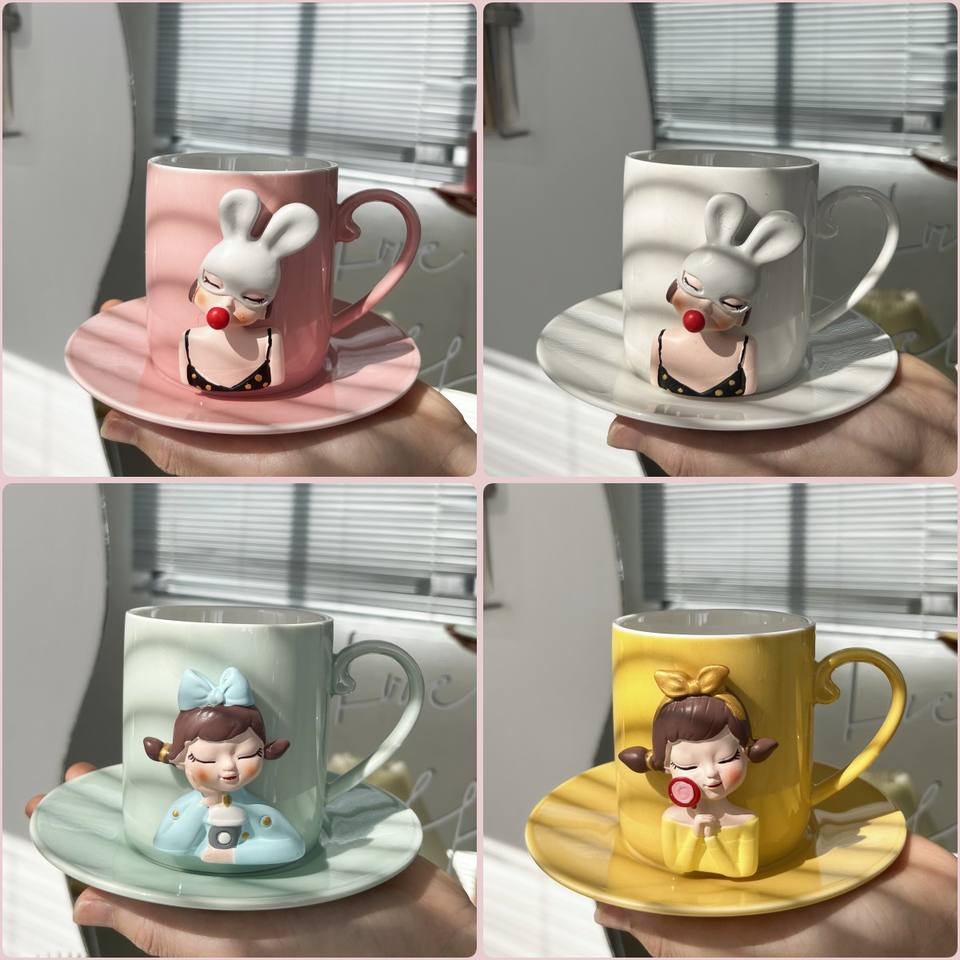 Q Version Cartoon Princess Ceramic Cup Saucer Set Multicolor 230ml Capacity Dishwasher & Microwave Safe Gift Box Packaging
