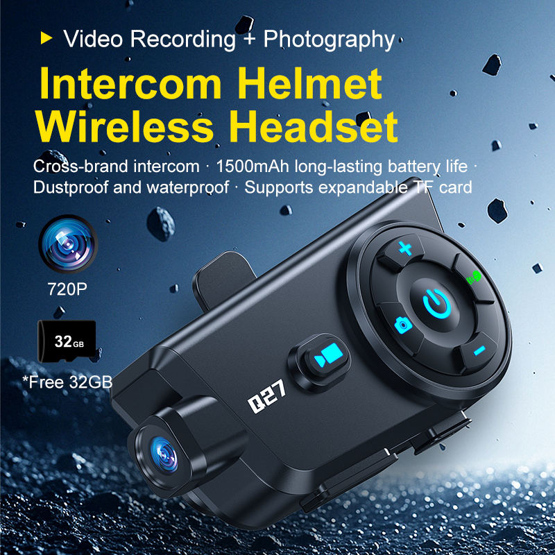Q27 ABS Wireless Helmet Camera for Motorcycle Helmets with for Intercom Recorder 720p Waterproof & Microphone