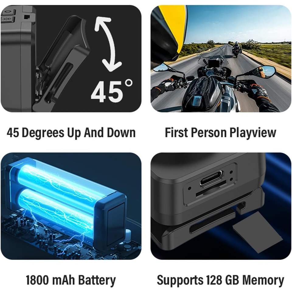 QALUIL Full 1080P Action Sports Camera Wide-Angled LED Headlight 30fps Video Capture Waterproof Bike Recording Supports MicroSD