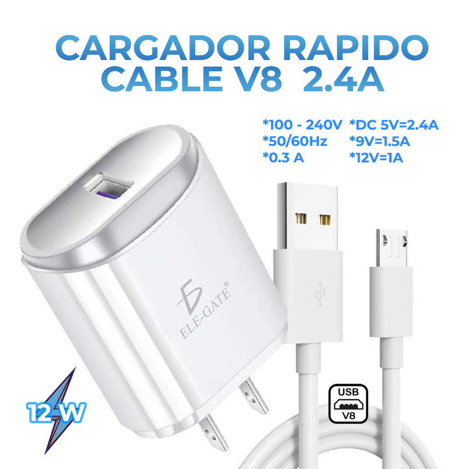 QC 3.0 USB 5V 2.4A Quick Charger with Micro V8 Cable