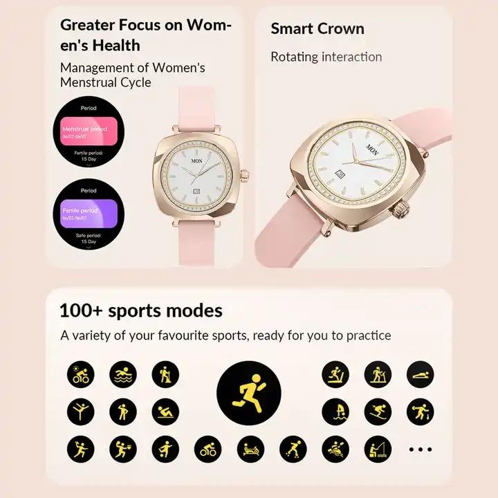 chronograph, THERMOMETER, Alarm Clock, Remote Control, Sleep Tracker, Fitness Tracker, Call Reminder, Push Message, Heart Rate Tracker, Activity Tracker, Social Media Notifications, Pedometer, Breath Monitor, Multisport Tracker, Sedentary Reminder, Menstrual Managementfunction