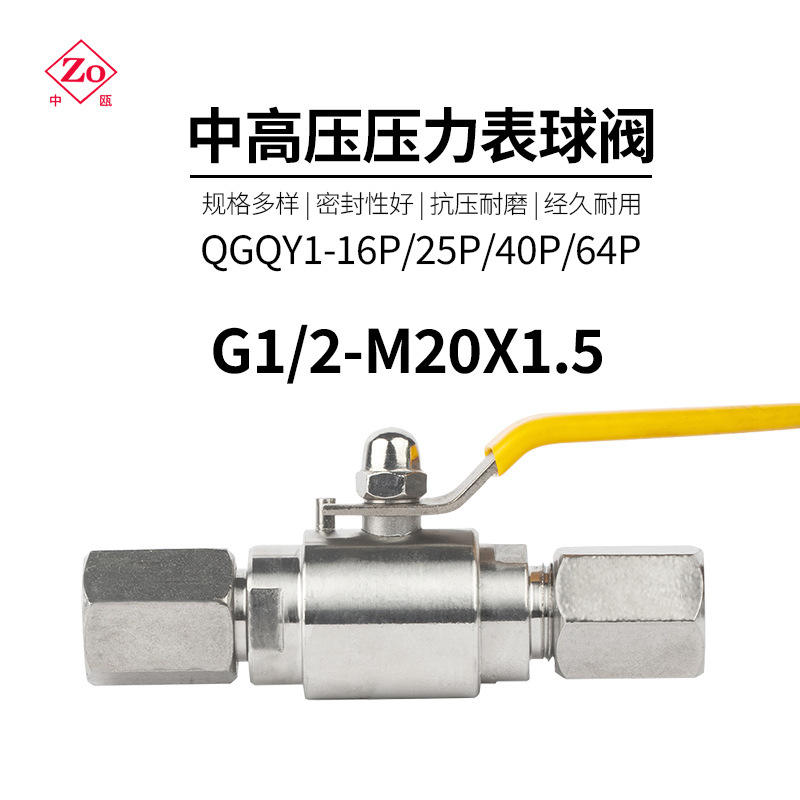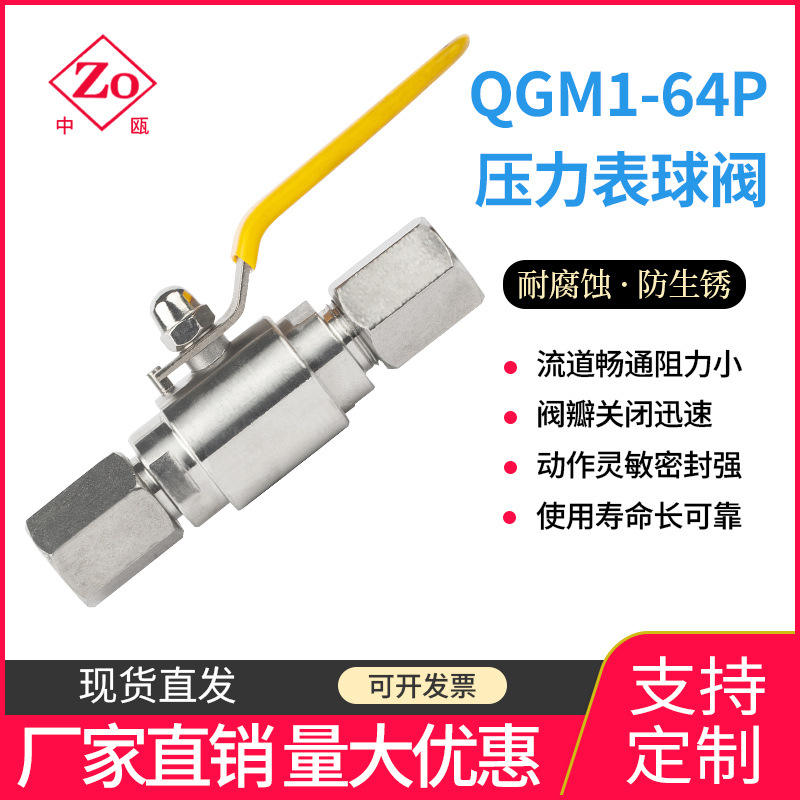 QGM1 Manual Pneumatic Ball Valve Pressure Gauge 304/316 Stainless Steel for Water Gas Oil Measuring Pipeline G1/2-M20*1.5 OEM