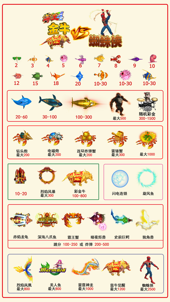 QIQU Ocean King 4 Taurus VS Spider-Man Arcade Skilled Fish Game Table Shooting Fish Game Fishing Hunter Game Software for Sale
