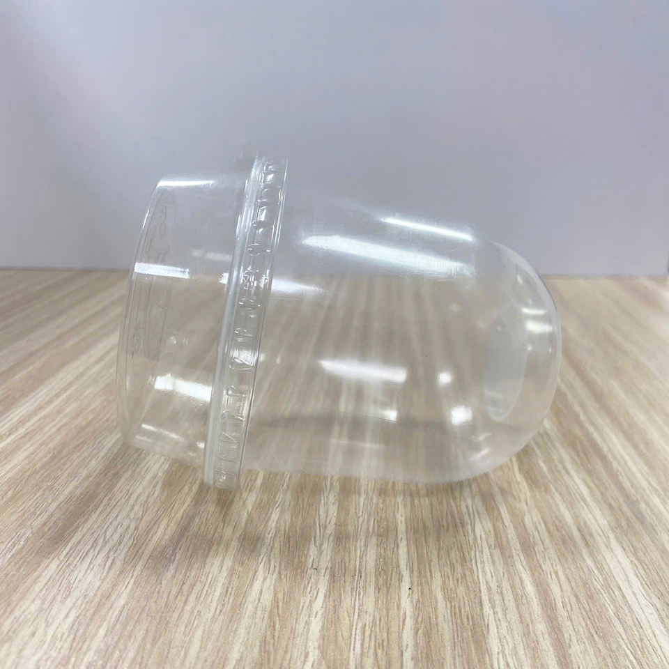 QUANG QUAN 95mm 400ml 14oz U Shape Bottom Disposable Clear PP Plastic Cups With Lids for Iced Coffee Ice Cream Dessert