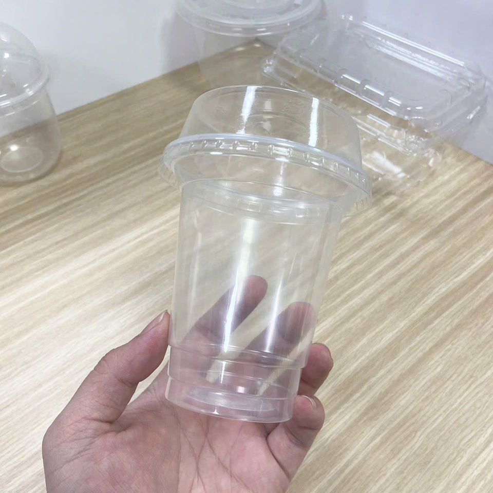 Quang Quan Disposable PP Plastic Cups 95mm Single Wall Cups 12 16 24oz Sizes for Coffee Beverages Smoothies Lemonade Bubble Tea