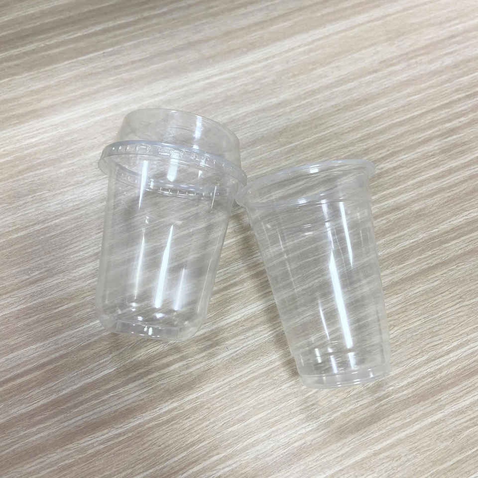 QUANG QUAN PP Plastic Cup 95mm 500ml 17oz Flat Bottom U Shape Bottom Disposable Clear Iced Coffee Cup Plastic Cups With Lids