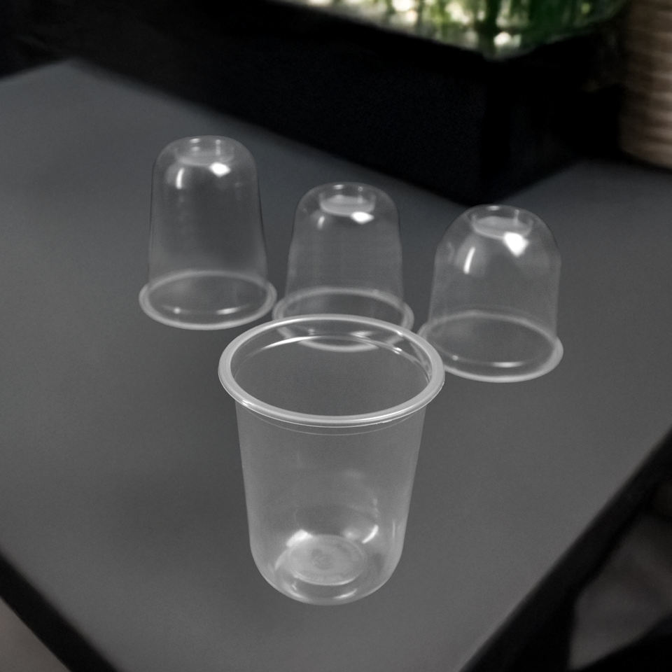 QUANG QUAN Single Wall Clear PP Plastic Cups 12oz/16oz/20oz with Lids 95mm Diameter for Coffee/Soda/Milk Tea/Cold Drinks