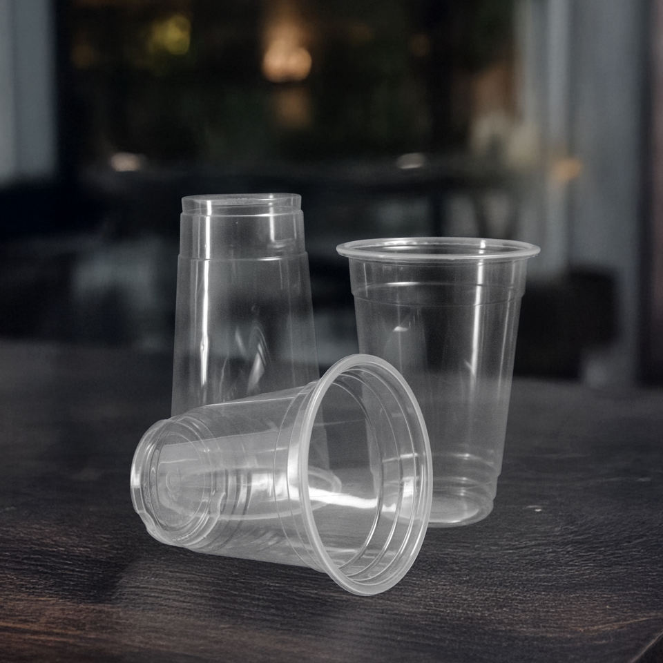 QUANG QUAN Wholesale Transparent PP Single Wall Disposable Plastic Cups 95mm 16oz & 24oz Capacity for Tea Coffee & Cold Drinks