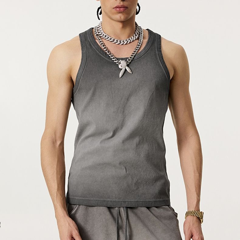QUICKSHOW Mens Casual Solid Quick Dry Gym Tank Top Knitted Elastic Polyester Cotton Fitness Activewear Vest