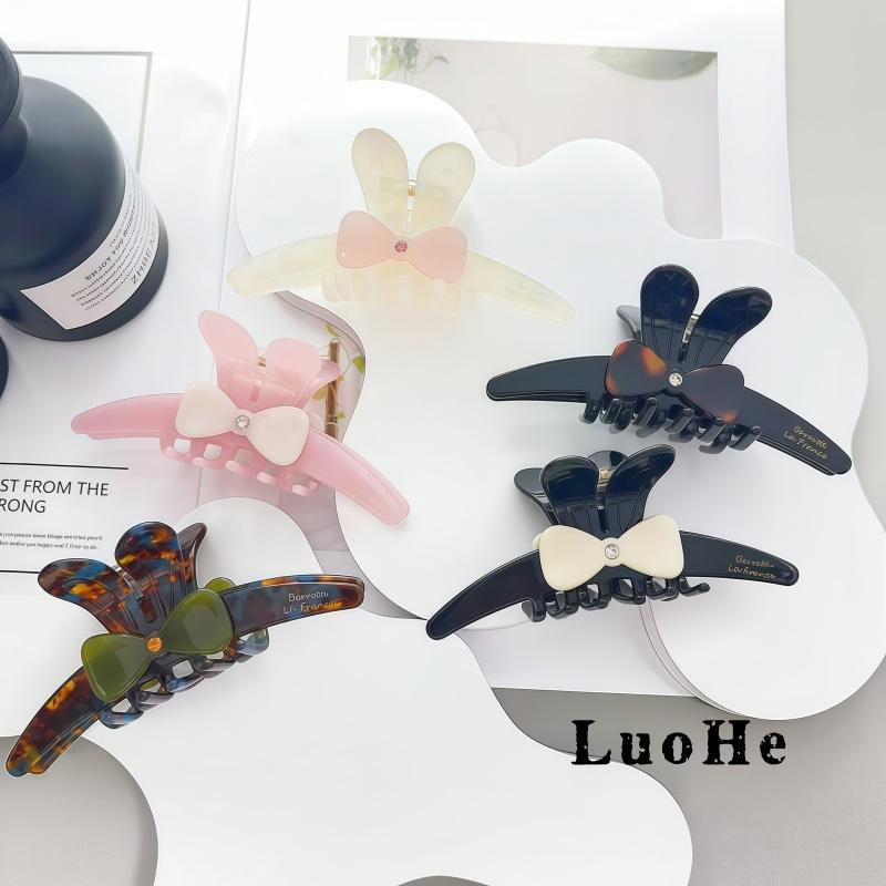 QX Kinling Sweet Cute European American Style Rabbit Ear Bow Custom Logo Women Cellulose Acetate 11.5cm Party Hair Claw Clips