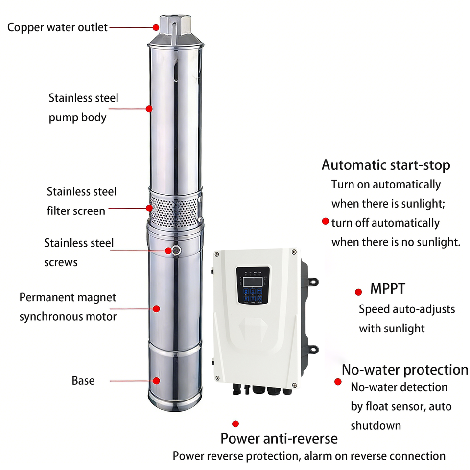 QY 3JC4.5-68-D48/550 Centrifugal Solar Pump DC 48V 825W 68m Head 4.5m/H | High Efficiency Stainless Steel Impeller | Water
