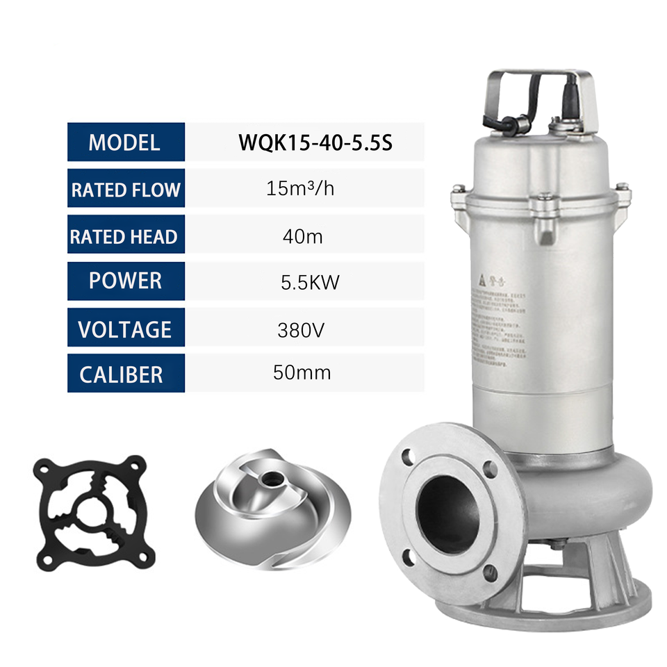 QY Cost - Saving WOK - S Full Stainless Steel Cutting Submersible Pump for Food Factory Sewage (Flange Port)