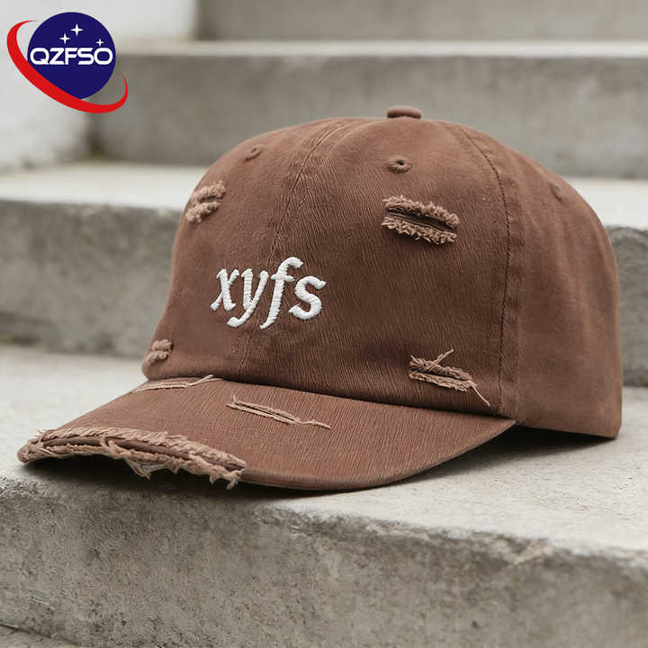 QZFSO Custom 6 Panel Distressed Retro Baseball Caps Heavyweight Washed Unstructured Vintage Flat Embroidery Snapback Hats
