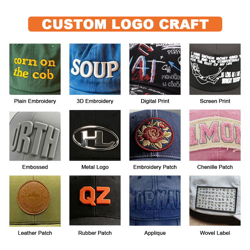 Logo position:front panel, brim/visor, Left panel, back curved part, Right Panel