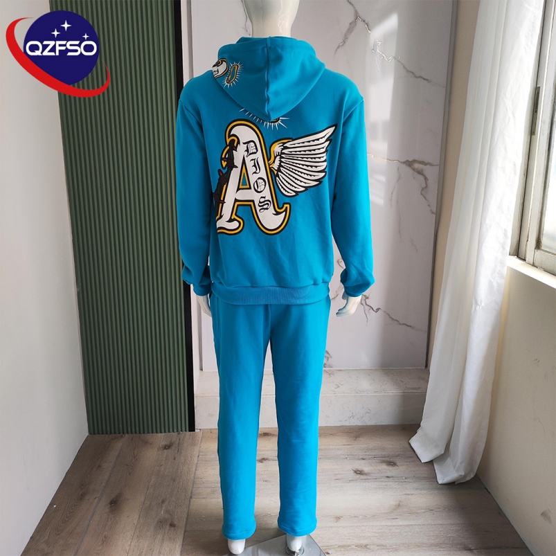 QZFSO Custom Vintage Hoodie and Flared Pants With Zipper Two Piece Set Embroidery Sweatsuit Sun Faded Acid Wash Men Tracksuit