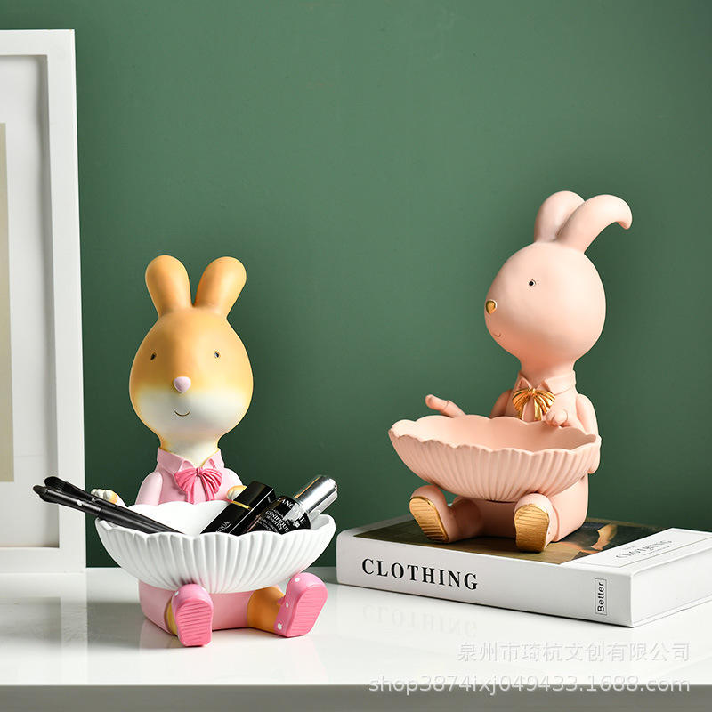 Qi Hang Rabbit Storage Box Round PP Standing Type Decorative Home Ornament For Living Room Snack Or Craft Storage