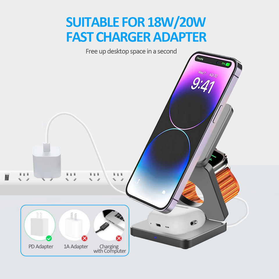 type:3 in 1 Wireless Charging Station, Desktop Charger, Fast Charger, Magnetic, Universal Adapter, Wireless Charger