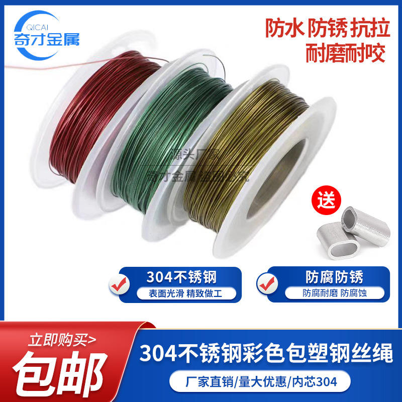 Qicai Colored Coated Steel Wire Rope 304 Stainless Steel Front Guide Wire Waterproof Anti-Rust Wear Resistant