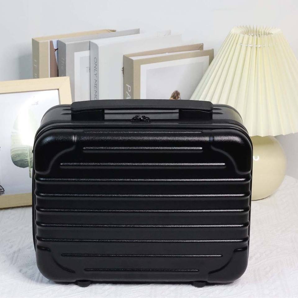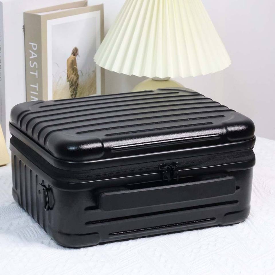 Qihui Professional Makeup Case Black Pc Material Zipper Closure Portable Cosmetic Bag With Soft Handle Stripe Pattern