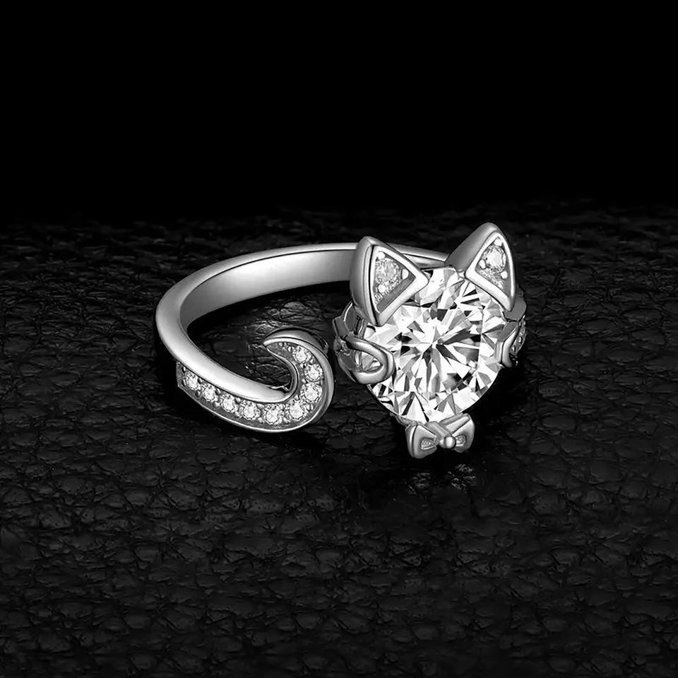 Qing's Cat Adjustable White Solid Gold Ring Lab Grown Diamond Gemstone Stacking Jewelry Beautiful Gift for Women Diamond Rings