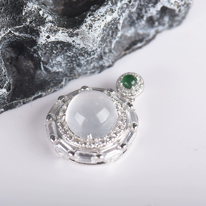 Qingyabailu Feicui 925 Pure Silver Jadeite Pendant Set Classic Style Anniversary Jewelry Certified Authentic Luxurious Exquisite