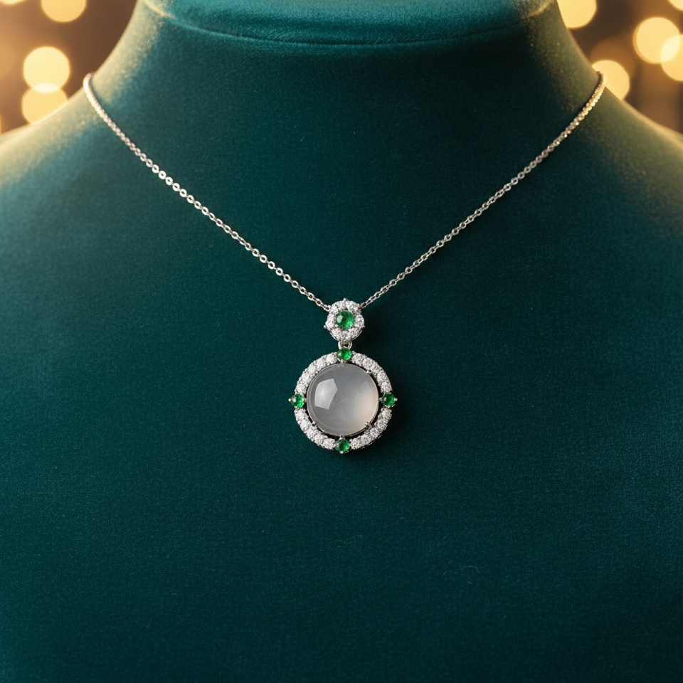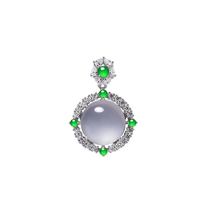 Qingyabailu Feicui High-grade Crystal 925 Silver Set with Natural Jadeite Charm Pendant Classic Style for Anniversary