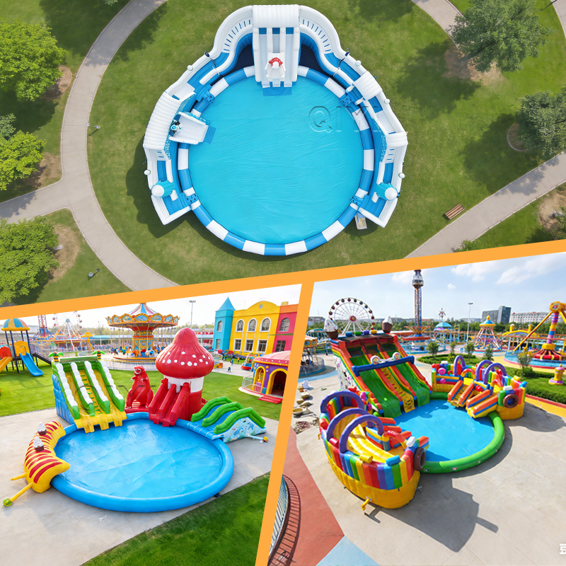 Qiyi Brand Cheap Price Kids Adult Commercial Large Inflatable Playground Floating Water Park Pool 0.55mm PVC Material 500kg