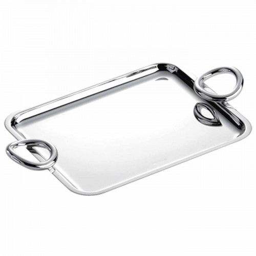Quality Assure Serving Tray with Rectangle Shaped and Round Handle Stainless Steel Metal Made Serving Tray For Sale