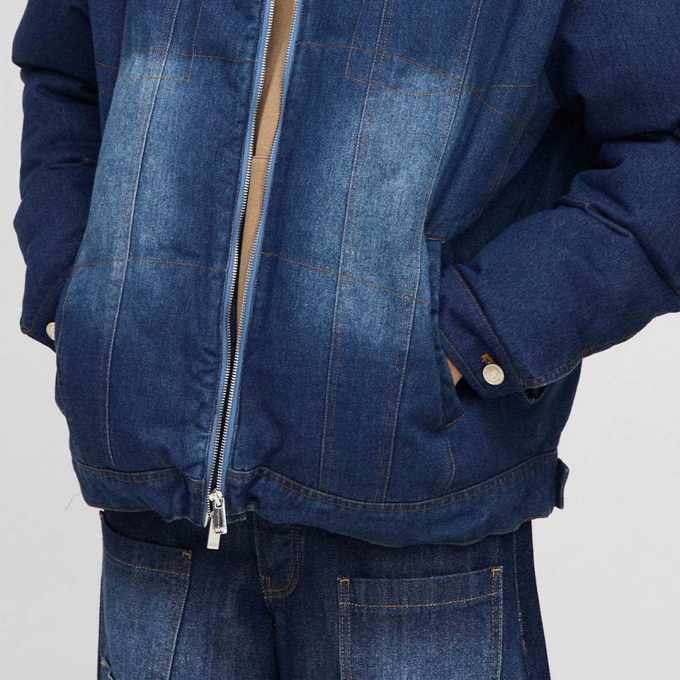 Quality Formal Embroidered Windproof Oversized Drop Shoulder Denim Jeans Jacket Men Distressed Black 100% Cotton Winter Filled