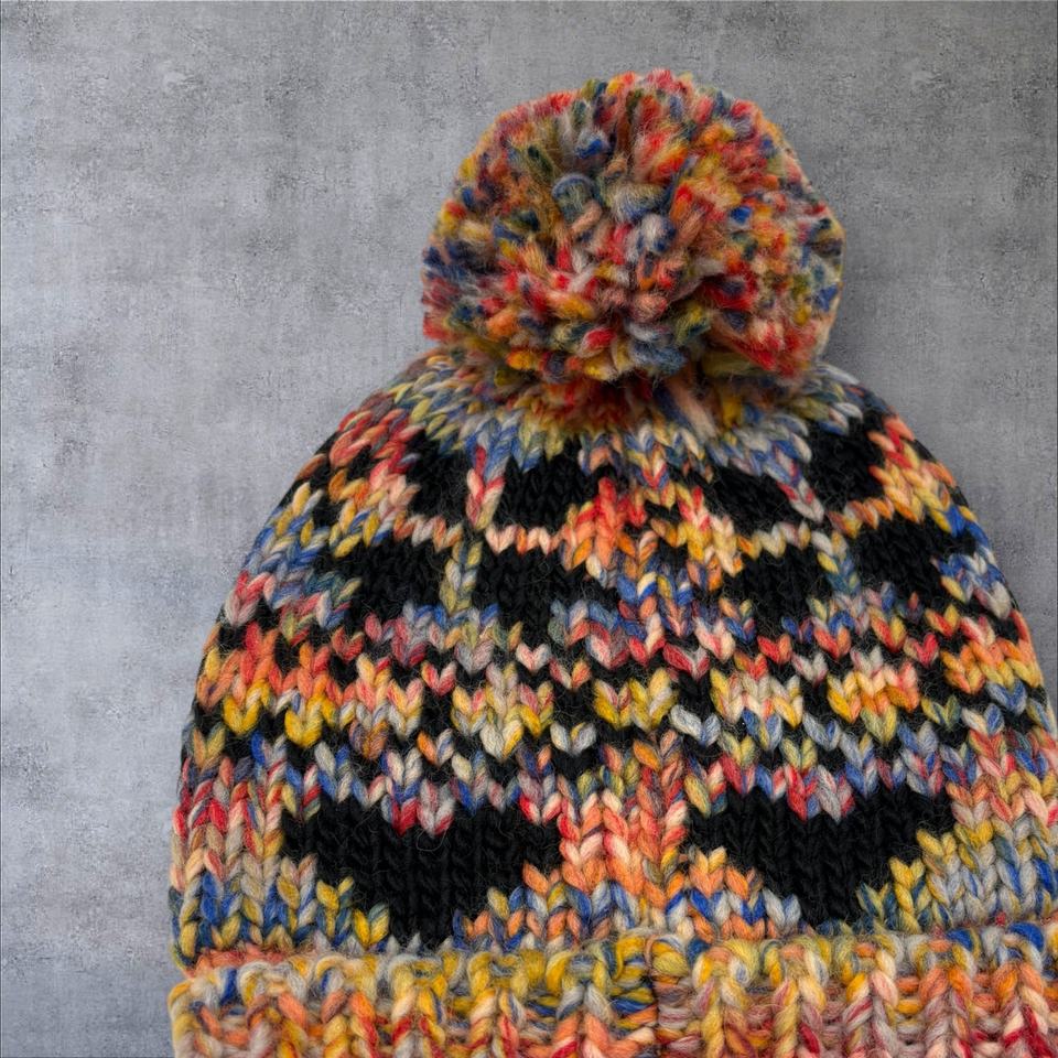 Quality Guarantee Unisex Jacquard Pattern Snowflakes Beanie POM POM Adult Leather Patch Printing 70% Acrylic 30% Wool Winter