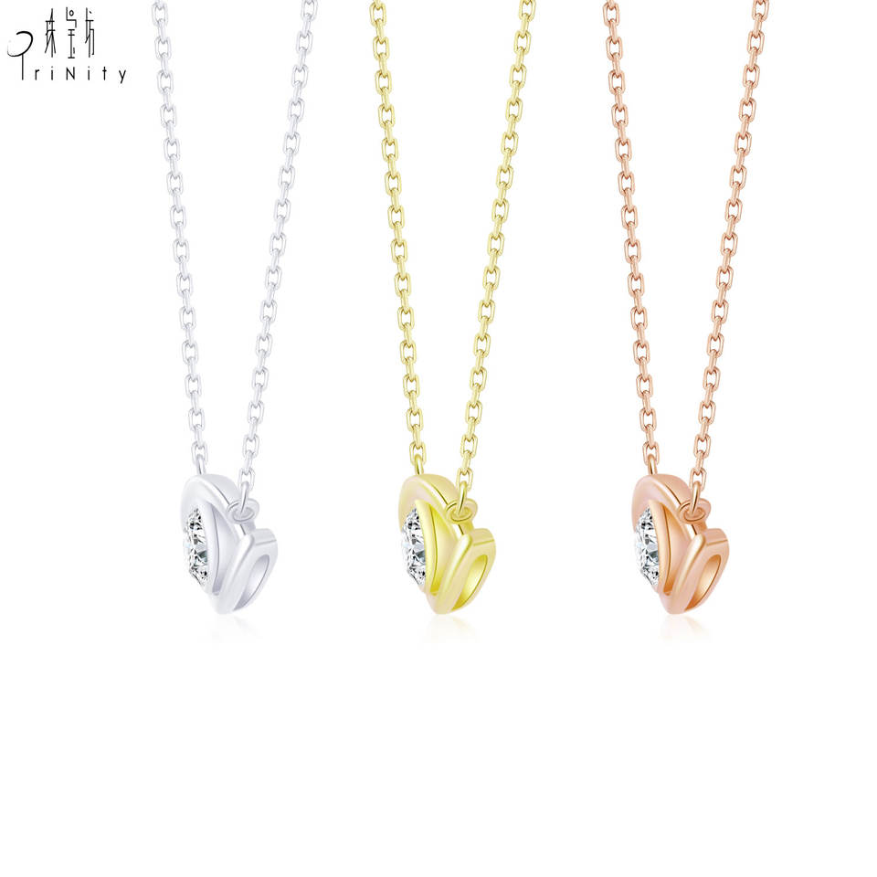 Quality Moedern Single Diamond Pendant Jewelry Trendy Style Natural Diamonds 18K Solid Gold Clavicle Pendant Necklace Link Chain
