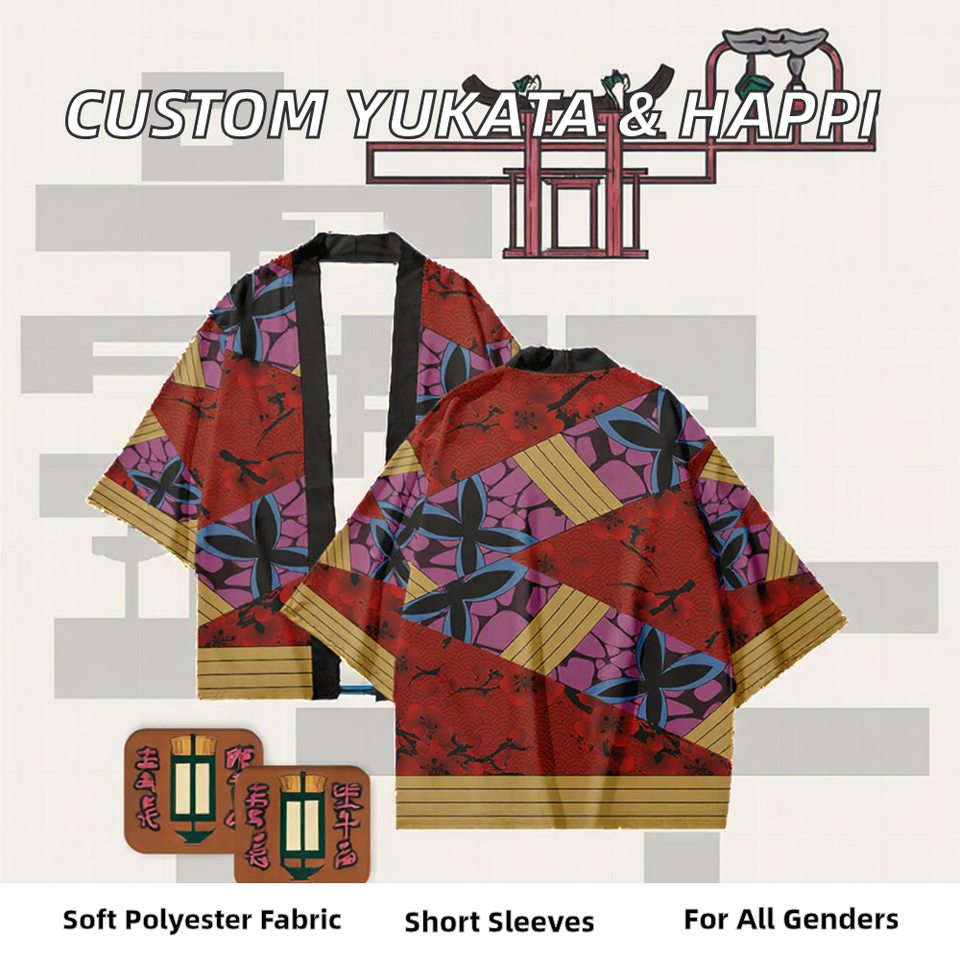 Quality Standards Men's Adult Half Sleeve Custom Yukata Happi Coats Japanese Kimono Polyester