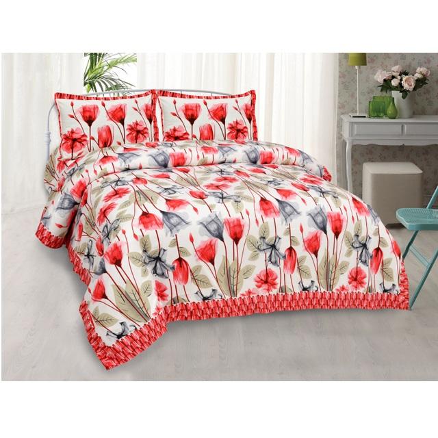 Queen 3 Pieces Farmhouse 100% Organic Cotton GOTS Certificate Bedding Set with Pillowcase Soft Microfiber Solid Red Duvet Covers