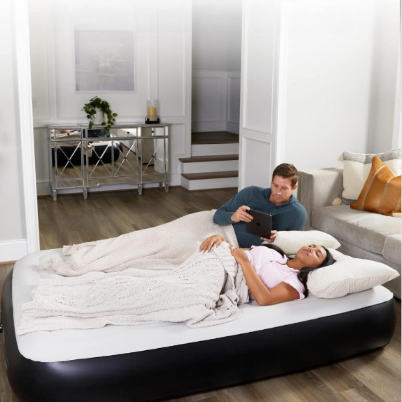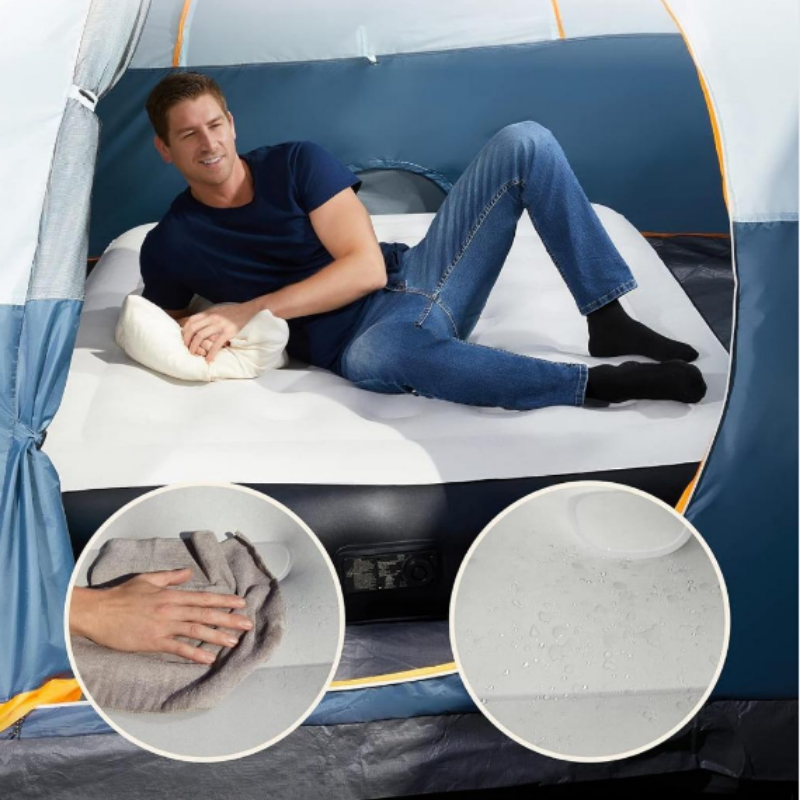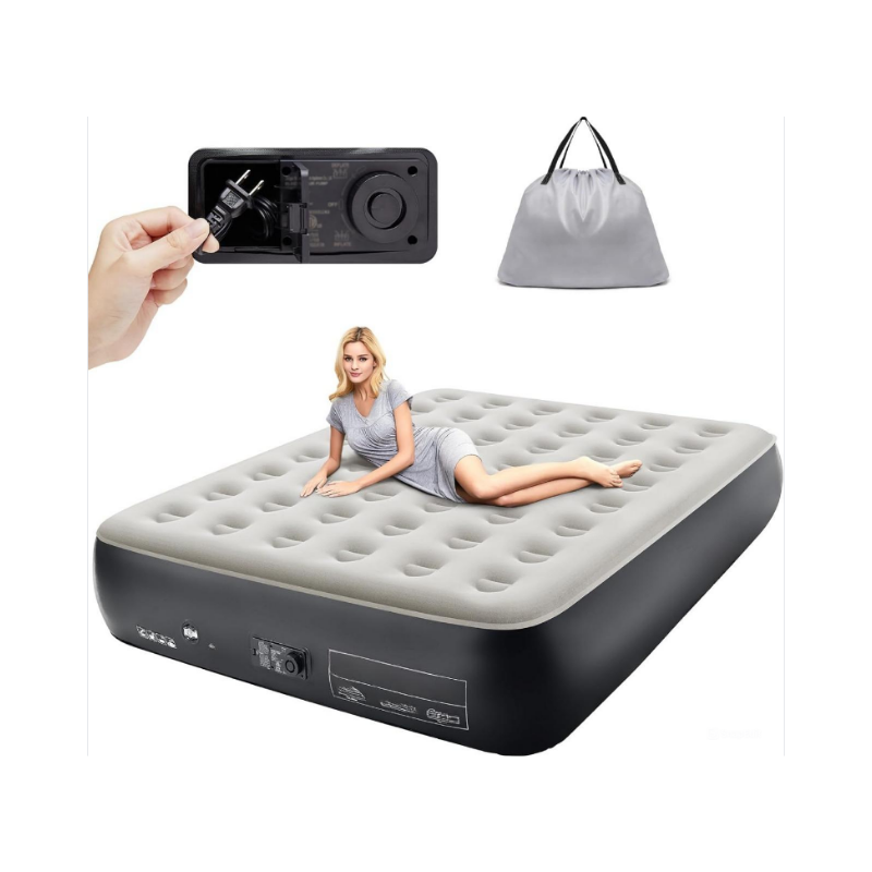 Queen Air Mattress, Built in Pump Inflatable Blow Up Airbed with Storage Bag13High Speed Inflation Black Camping Accessories