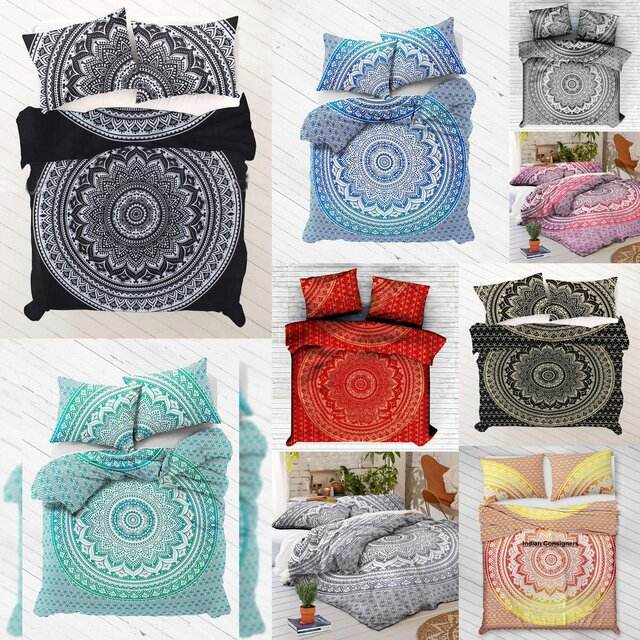 Queen Size Duvet Cover Set Mandala Ombre Reversible Quilt Cover Multiple Colors Cotton Comforter Bedding By Indian Consigners